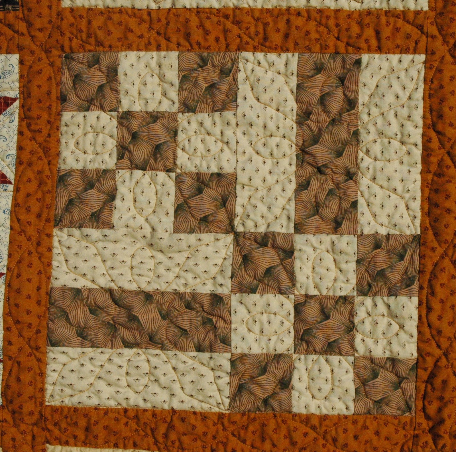 And finally, all the blocks from the quilt.  All the blocks are quilted with a different pattern.  She used a camel colored thread.